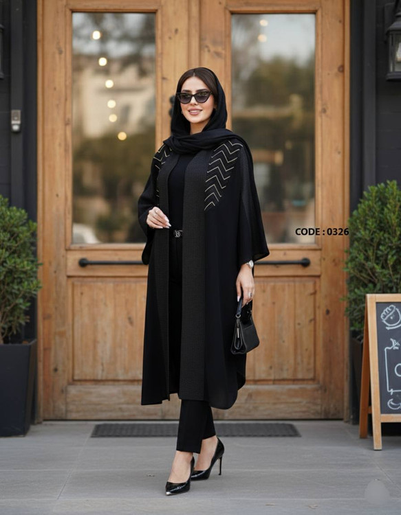 🧵 مشخصات پارچه: کرپ حریر جتبلک درجه یک (بسیار لطیف و مشکی زاغ) در ترکیب با ژاکارد شاین و گلدوزیهای ظریف صنعتی (تضمین عدم پرزدهی و ثبات کیفیت در درازمدت)