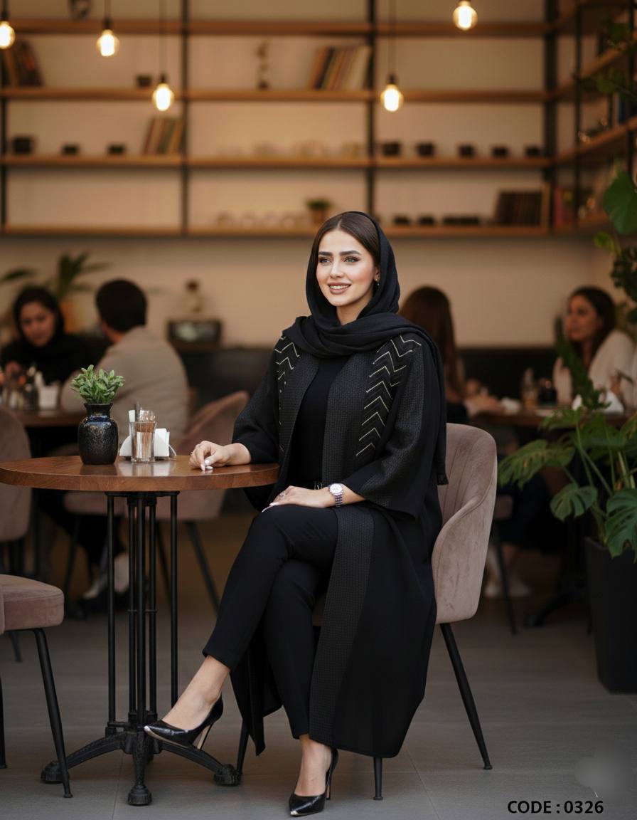🧵 مشخصات پارچه: کرپ حریر جتبلک درجه یک (بسیار لطیف و مشکی زاغ) در ترکیب با ژاکارد شاین و گلدوزیهای ظریف صنعتی (تضمین عدم پرزدهی و ثبات کیفیت در درازمدت)