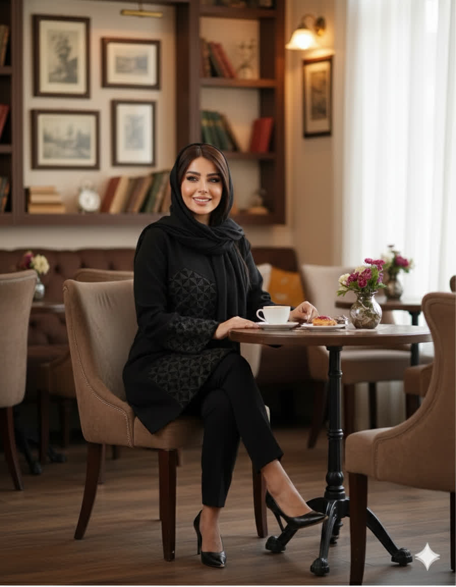 • 🎨 رنگبندی: تکرنگ مشکی کلاسیک (جلوه درخشان نقره روی مخملِ مشکی)