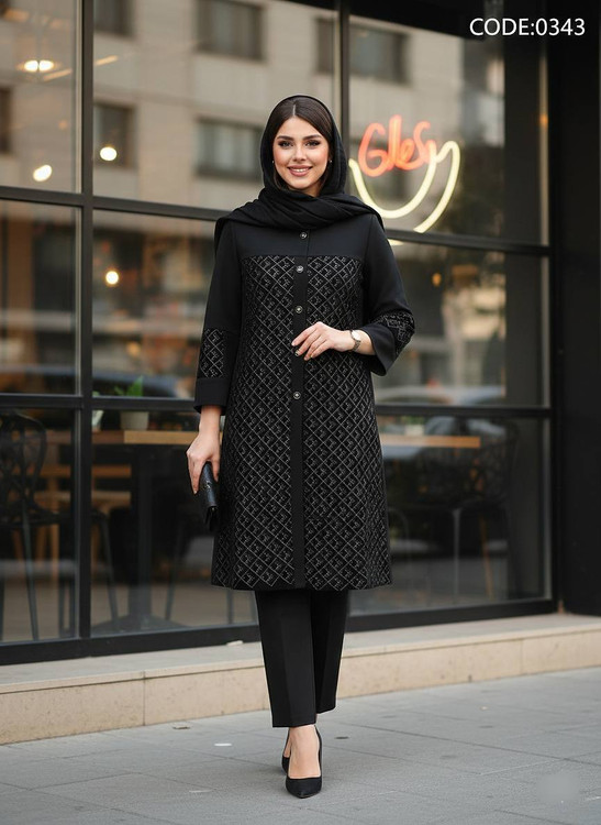 🌟 کد 0343: مانتو مجلسی مخمل با جزئیات سوزندوزی اصیل
