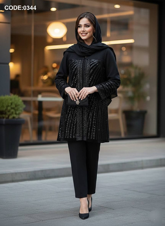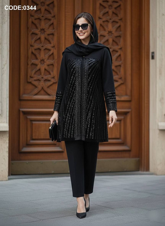 🌟 💎 کد 0344: اگر به دنبال استایلی هستید که نگاهها را خیره کند، این مانتو کتی منحصربهفرد با خرجکار مخمل تراکم بالا، سوزندوزی و پولکدوزیهای منظم، دقیقاً همان چیزی است که کمد لباس شما برای سال نو کم دارد. انتخابی برای خانمهای پیشرو در دنیای مد.